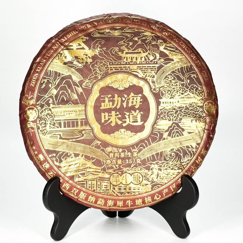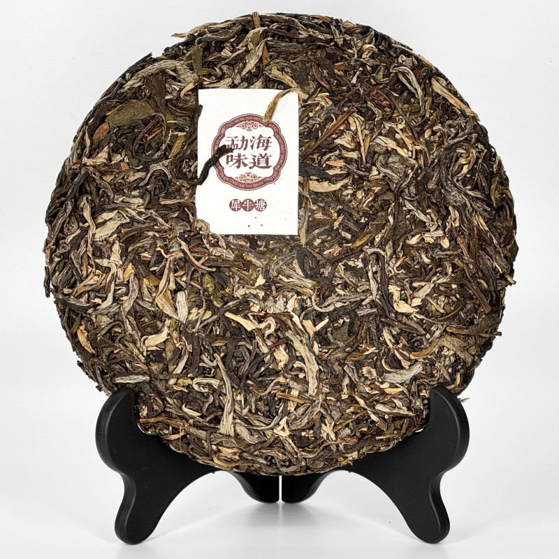 ✦ Произведён в провинции Юньнань, регион Сишуанбаньна. ✦ Сырьё собрано вручную с молодых деревьев в уезде Мэнхай. ✦ Урожай 2022 года, форма — плотный прессованный блин 357 г. ✦ Аккуратная обработка и плотная прессовка позволяют чаю хорошо развиваться при хранении, постепенно становясь мягче и глубже.