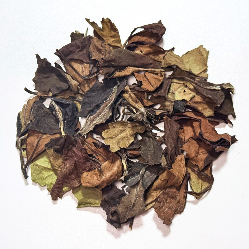 ✦ Традиционный белый чай из провинции Фуцзянь. ✦ Изготавливается из зрелых листьев и почек чайного куста. ✦ Производство включает завяливание и естественную сушку без скрутки и прожарки. ✦ Более плотный и насыщенный по сравнению с Бай Му Дань и Бай Хао Инь Чжэнь, но сохраняет характерную мягкость белого чая.