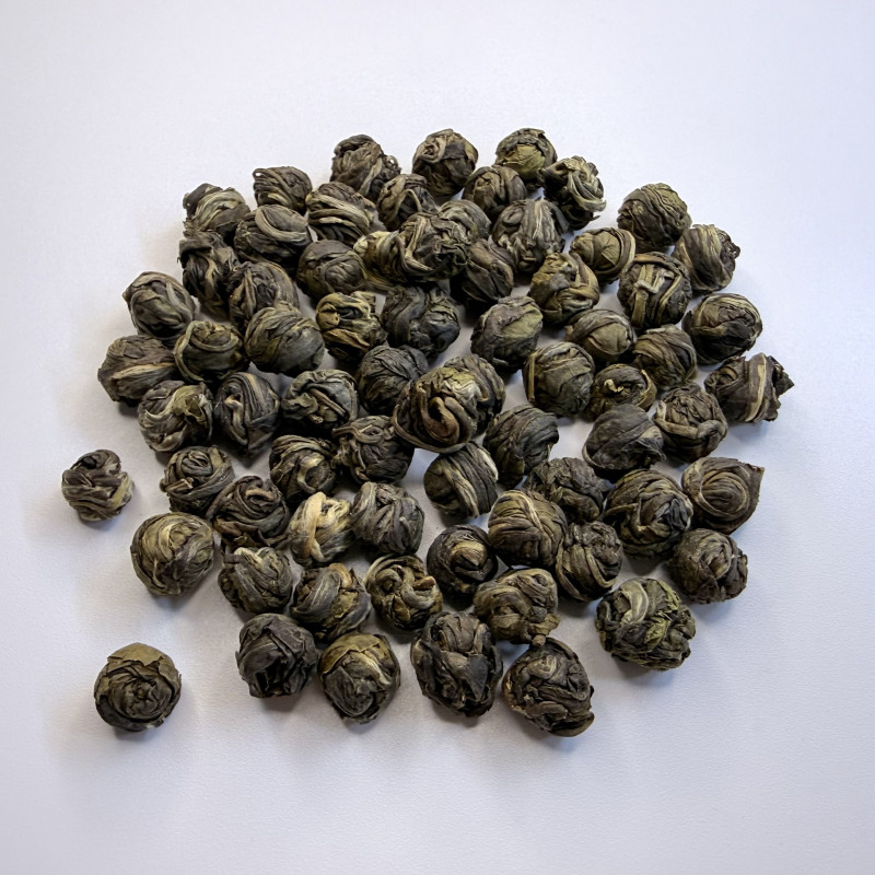 ✦ "Green Pearl" is a green tea rolled into tight balls that open up during brewing. ✦ This shape helps preserve the aroma and freshness of the leaf. ✦ Made using the classic green tea technique: quickly heating the leaf to stop fermentation, rolling, and drying.